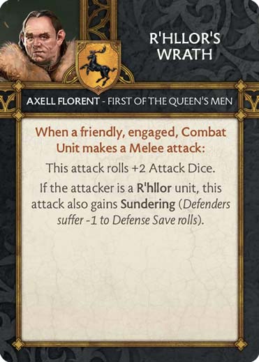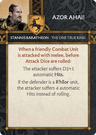 Si le défenseur est une unité R’hllor, l’attaquant subit 4 Touches automatiques au lieu de lancer le dé.