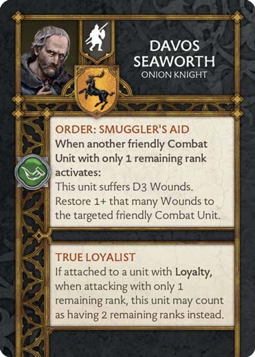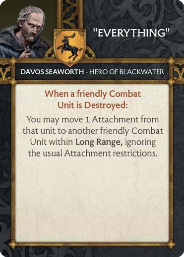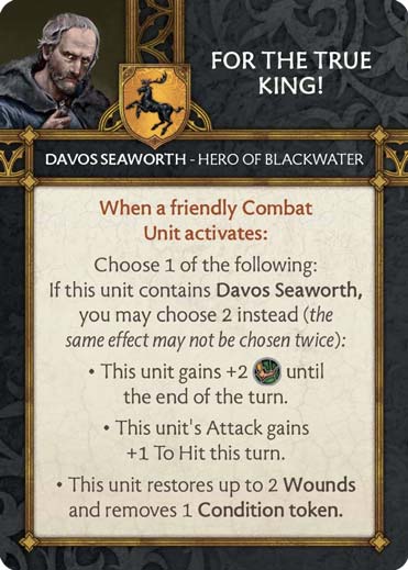 Si cette unité contient Davos Seaworth, vous pouvez en choisir 2 à la place (le même effet ne peut être choisi 2 fois) :