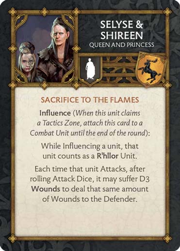 Influence (Quand cette unité s’empare d’une Zone du Tableau Stratégique, attachez cette carte à une Unité Combattante jusqu’à la fin du round) :