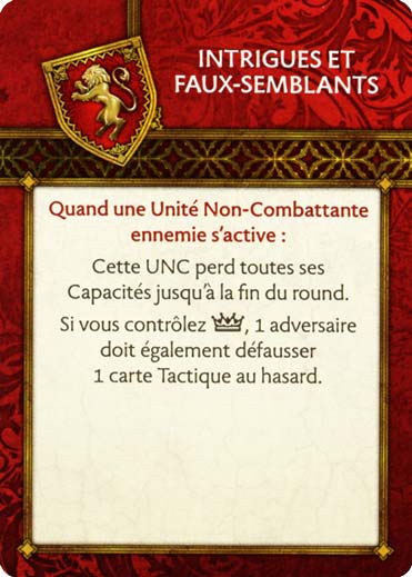 Le domaine politique : Avec des personnages tels que Tyrion Lannister et Cersei Lannister, les joueurs ont accès à un certain nombre d’options non-combatives pour perturber leur adversaire et réduire les capacités de leurs unités.