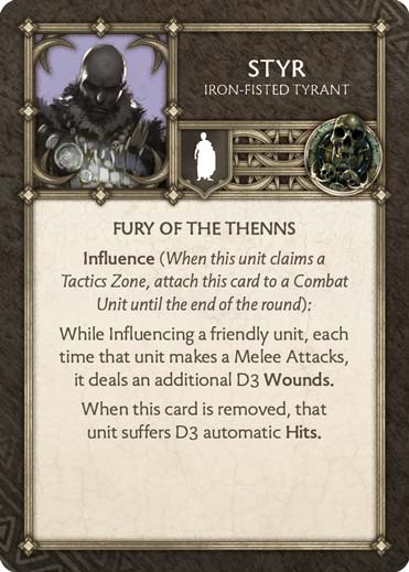 Mais la cible prioritaire pour Styr sera certainement l’unité avec laquelle vous prévoyez d’attaquer plusieurs fois pendant ce round, que ce soit par l’utilisation de la zone tactique « Combat » ou grâce aux Cartes Tactiques à votre disposition.