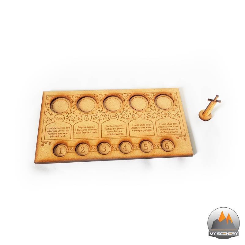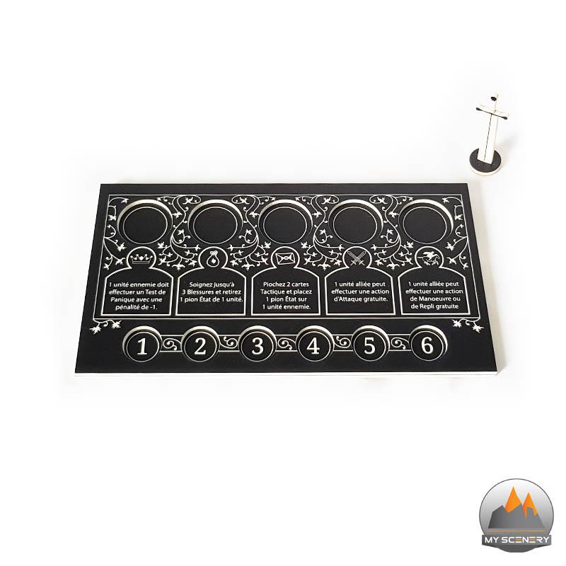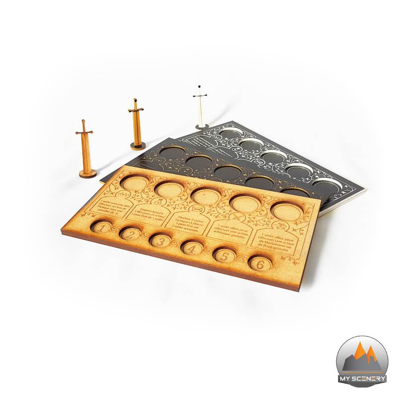 Après les décors, My Scenery continue de proposer de nouveaux accessoires. Cette fois il s’agit de Plateaux Stratégiques (avec pion tour épée) et de réglettes Longue Portée.