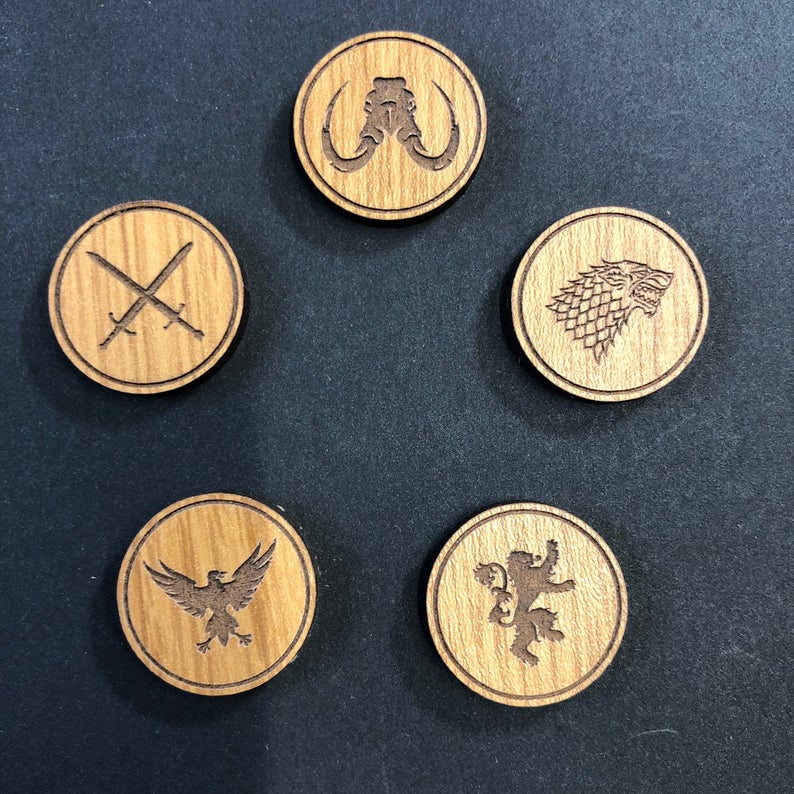 Présentations d’accessoires Labmasu pour le Trône de Fer : Dés, Réglettes, Pions.